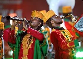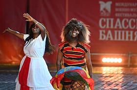 XVII Международный военно-музыкальный фестиваль "Спасская башня" на Красной площади. Церемония закрытия. Президентский оркестр Буркина-Фасо выступает на церемонии.