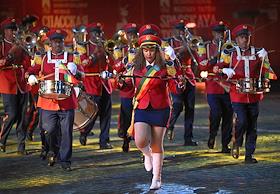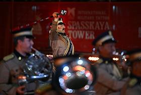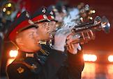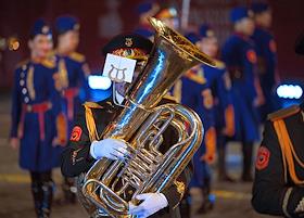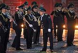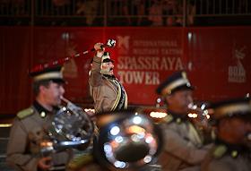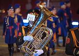 XVII Международный военно-музыкальный фестиваль "Спасская башня" на Красной площади. Церемония закрытия. 21-й военный оркестр Московского военного округа выступает на церемонии.