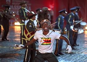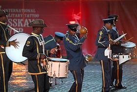 XVII Международный военно-музыкальный фестиваль "Спасская башня" на Красной площади. Церемония закрытия. Оркестр Вооруженных сил Зимбабве выступает на церемонии.