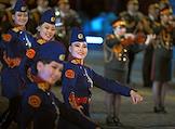 XVII Международный военно-музыкальный фестиваль "Спасская башня" на Красной площади. Церемония закрытия. Ансамбль барабанщиц Пансиона воспитанниц Министерства обороны России выступает на церемонии.