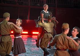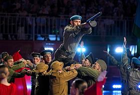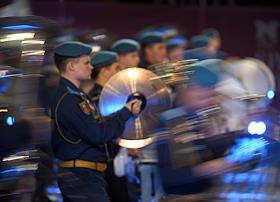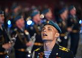 XVII Международный военно-музыкальный фестиваль "Спасская башня" на Красной площади. Церемония закрытия. Сводный оркестр и Ансамбль песни и пляски Воздушно-десантных войск (ВДВ) России выступают на церемонии.