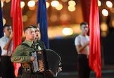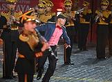 XVII Международный военно-музыкальный фестиваль "Спасская башня" на Красной площади. Церемония закрытия. Центральный концертный образцовый оркестр Военно-Морского Флота имени Н.А.Римского-Корсакова и воспитанники студии "Юные Александровцы" Академического ансамбля песни и пляски Российской армии имени А.В.Александрова выступают на церемонии.
