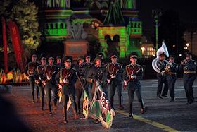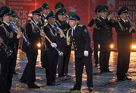 XVII Международный военно-музыкальный фестиваль "Спасская башня" на Красной площади. Церемония закрытия. Центральный пограничный ансамбль Федеральной службы безопасности (ФСБ) России выступает на церемонии.