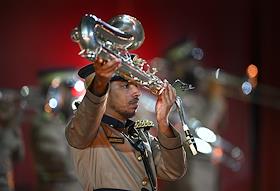 XVII Международный военно-музыкальный фестиваль "Спасская башня" на Красной площади. Церемония закрытия. Оркестр Полицейской академии Шарджи (ОАЭ) выступает на церемонии.