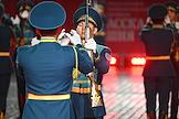 XVII Международный военно-музыкальный фестиваль "Спасская башня" на Красной площади. Церемония закрытия. Рота почетного караула Министерства обороны Республики Казахстан выступает на церемонии.
