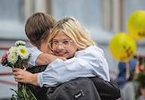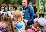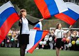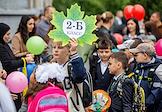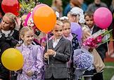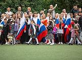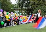 День знаний в школе № 341 Невского района. Ученики во время торжественной линейки, посвященной началу Учебного года.
