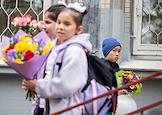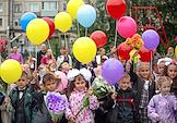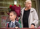 День знаний в школе № 341 Невского района. Родители и ученики перед началом торжественной линейки, посвященной началу Учебного года.