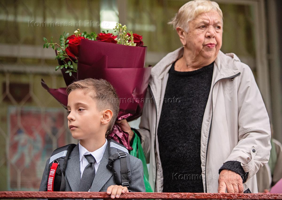 День знаний в школе № 341 Невского района. Родители и ученики перед началом торжественной линейки, посвященной началу Учебного года.