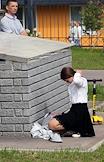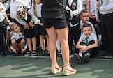 Празднование Дня знаний в Анкудиновской средней школе в жилом комплексе "Анкудиновский парк". Ученики перед торжественной линейкой, посвященной началу учебного года.