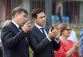 Празднование Дня знаний в Анкудиновской средней школе в жилом комплексе "Анкудиновский парк". Глава Кстовского района Нижегородской области Иван Уланов (слева) и мэр Нижнего Новгорода Юрий Шалабаев (справа) во время торжественной линейки, посвященной началу учебного года.