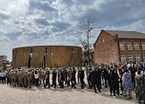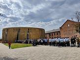 Траурные мероприятия, посвященные 21-й годовщине террористического акта в средней школе №1 в Беслане. Участники мероприятий на территории мемориального комплекса в спортзале школы, где боевики удерживали заложников.