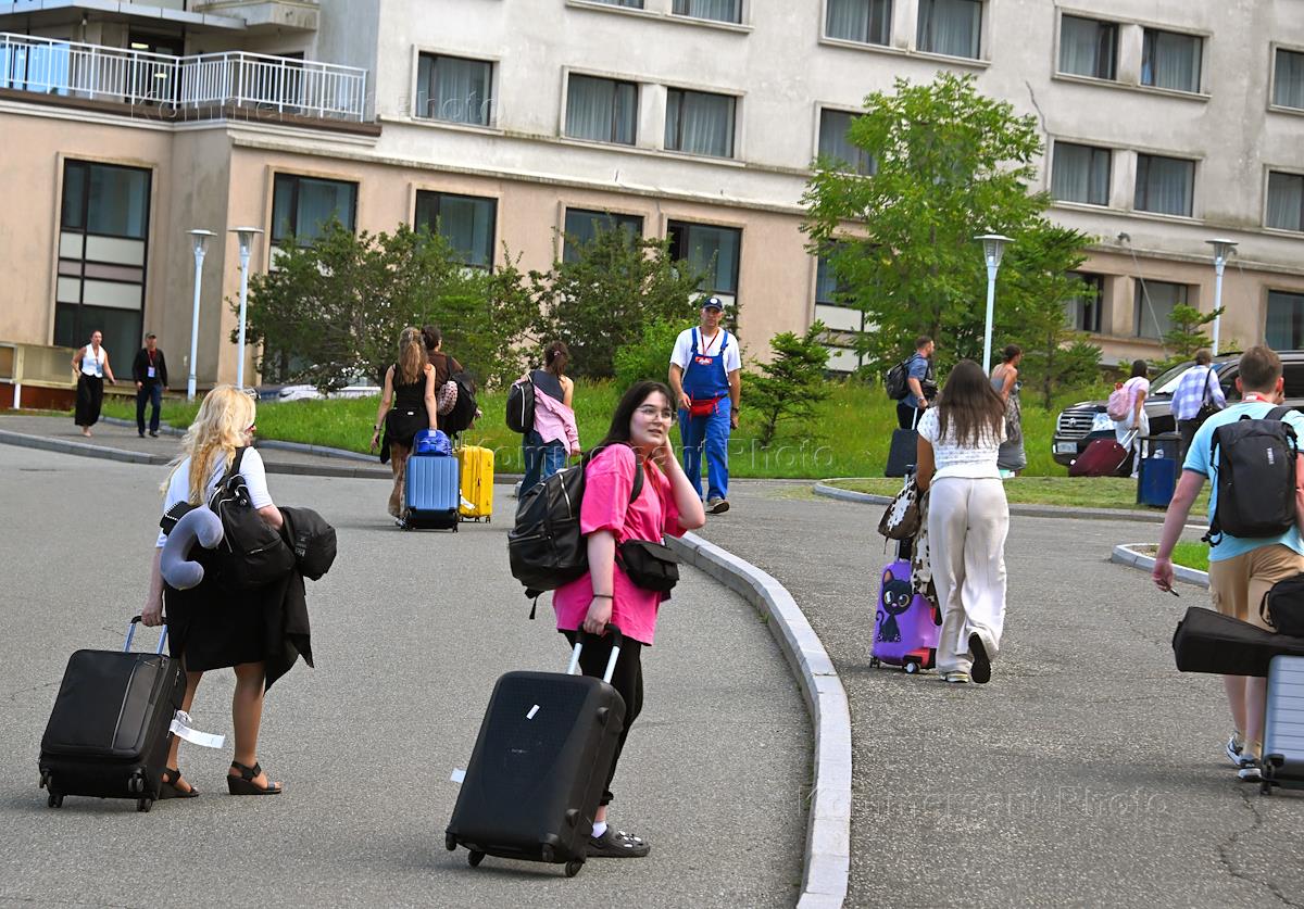 Восточный экономический форум (ВЭФ) 2025 на территории Дальневосточного федерального университета (ДВФУ) на острове Русский. Жанровая фотография. Встреча участников форума в Международном аэропорте Владивостока имени В. К. Арсеньева.