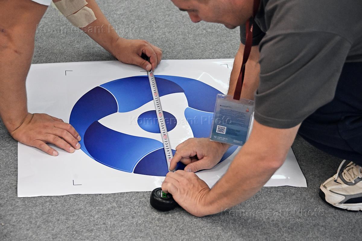 Восточный экономический форум (ВЭФ) 2025 на территории Дальневосточного федерального университета (ДВФУ) на острове Русский. Жанровая фотография. Подготовка к открытию форума на стенде Государственной корпорации "Росатом".