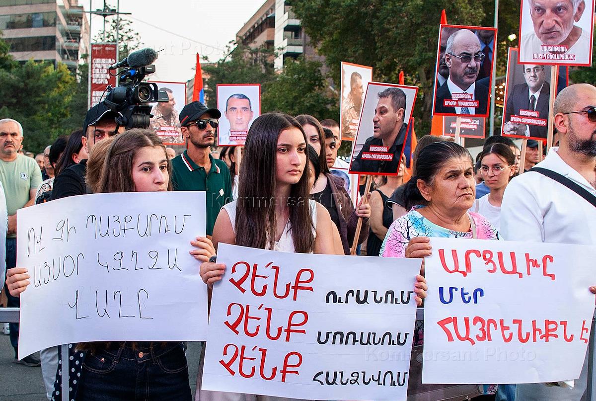 День независимости Арцаха (Нагорного Карабаха) в Ереване. Участники митинга единства на площади Свободы.
