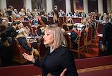Пресс-показ экспозиции "Образ Москвы в русском искусстве из коллекции Государственного Русского музея" в павильоне № 1 "Центральный" на ВДНХ. Генеральный директор Государственного Русского музея Алла Манилова на пресс-показе.