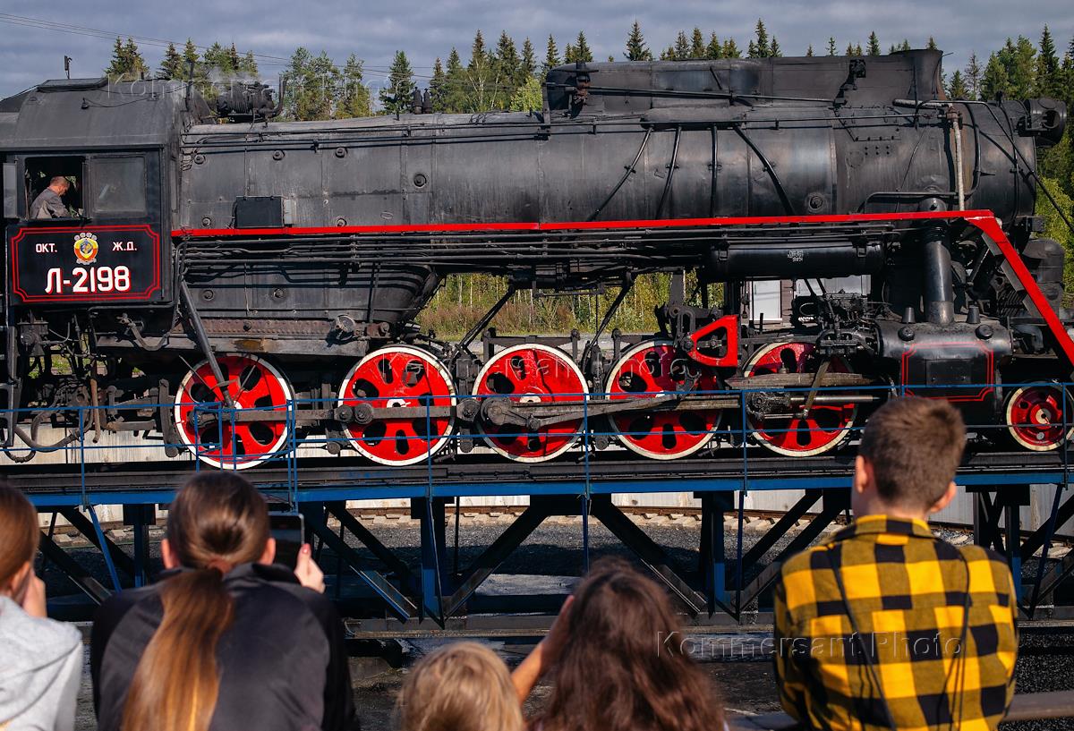 Ретропоезд "Рускеальский экспресс". Жанровая фотография. Разворот паровоза на конечной станции Горный парк Рускеала.