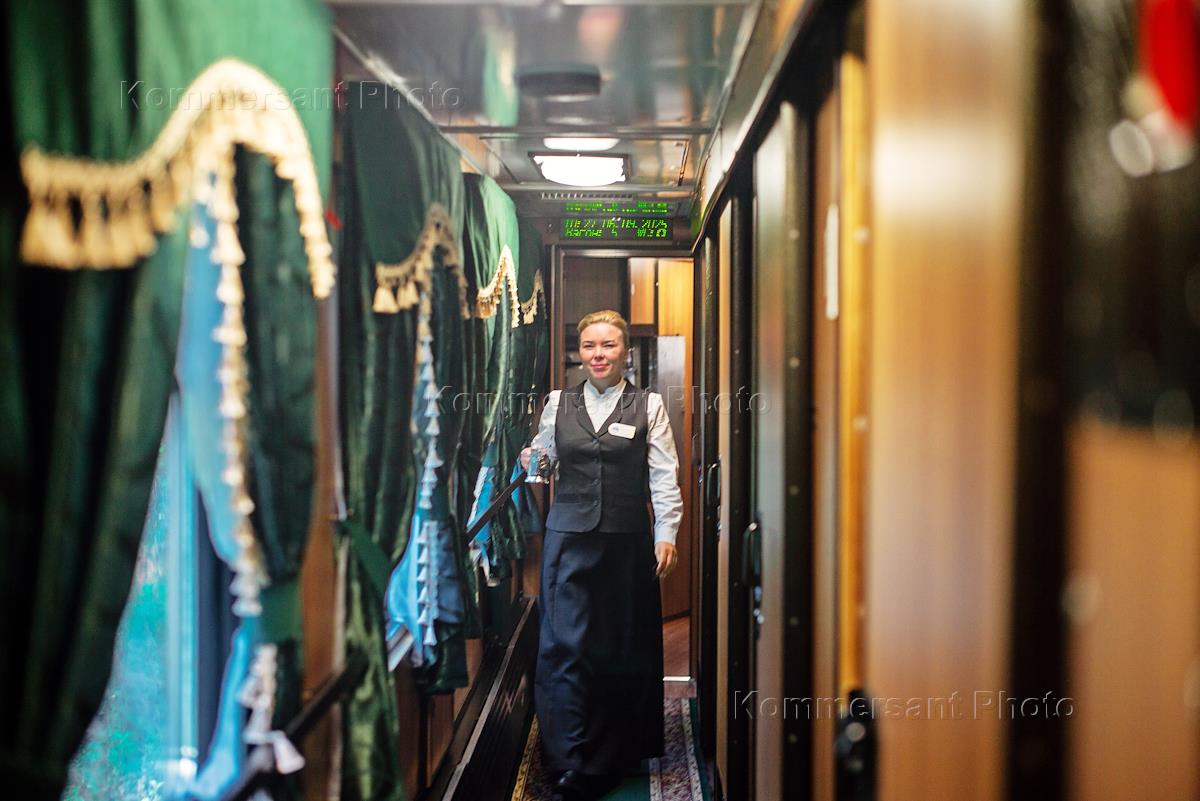 Ретропоезд "Рускеальский экспресс". Жанровая фотография. Проводница в вагоне поезда.