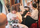 Ретропоезд "Рускеальский экспресс". Жанровая фотография. Женщина держит салфетку с эмблемой Рускеальского экспресса.