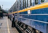 Ретропоезд "Рускеальский экспресс". Жанровая фотография. Проводники у вагонов поезда на станции Сортавала-Центр перед отправлением.