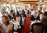 Ретропоезд "Рускеальский экспресс". Жанровая фотография. Пассажиры в вагоне-ресторане.