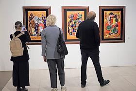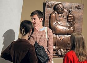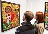 Церемония открытия выставки "Зураб Церетели. Я садовником родился" в Международном центре искусств "Главный проспект". Посетители на выставке.