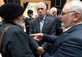 Церемония открытия выставки "Зураб Церетели. Я садовником родился" в Международном центре искусств "Главный проспект". Слева направо: учредитель Международного центра искусств "Главный проспект" Олег Гусев, исполнительный директор Московского музея современного искусства (ММСИ), президент Российской академии художеств Василий Церетели и президент Общероссийской общественной организации "Федеральная Грузинская национально-культурная автономия в России" Давид Цецхладзе на церемонии.
