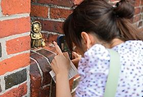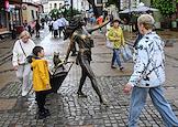 Виды Калининграда. Жанровая фотография. Женщина фотографирует миниатюрную городскую скульптуру.
