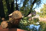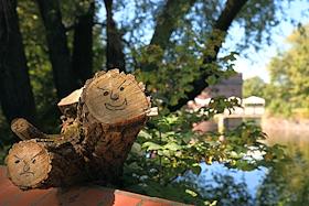 Виды Калининграда. Жанровая фотография. Нарисованные рожицы на спиле дерева.