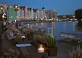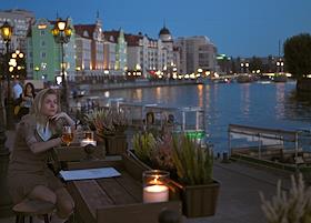 Виды вечернего Калининграда. Жанровая фотография. Девушка за столиком на летней веранде ресторана.