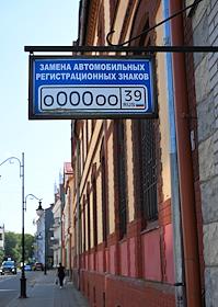 Виды Калининграда. Жанровая фотография. Вывеска "Замена автомобильных регистрационных знаков".