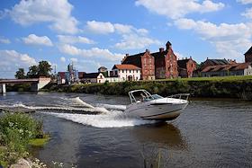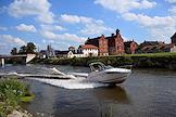 Виды Гвардейска. Замок Тапиау. Жанровая фотография. Катер на реке Дейме.