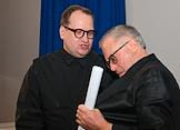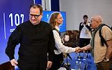 Пресс-конференция, посвященная открытию 107 сезона Московского академического Музыкального театра им. К.С. Станиславского и Вл. И. Немировича-Данченко (МАМТ), на Основной сцене театра. Солист балета, педагог-репетитор МАМТ Георги Смилевски (слева) во время пресс-конференции.