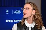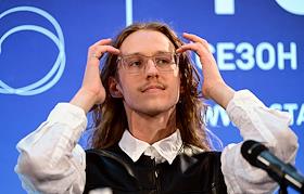 Пресс-конференция, посвященная открытию 107 сезона Московского академического Музыкального театра им. К.С. Станиславского и Вл. И. Немировича-Данченко (МАМТ), на Основной сцене театра. Художественный руководитель балетной труппы МАМТ Максим Севагин во время пресс-конференции.