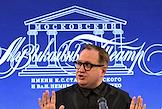 Пресс-конференция, посвященная открытию 107 сезона Московского академического Музыкального театра им. К.С. Станиславского и Вл. И. Немировича-Данченко (МАМТ), на Основной сцене театра. Музыкальный журналист Йосси Тавор во время пресс-конференции.