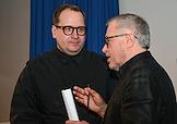 Пресс-конференция, посвященная открытию 107 сезона Московского академического Музыкального театра им. К.С. Станиславского и Вл. И. Немировича-Данченко (МАМТ), на Основной сцене театра. Главный режиссер МАМТ Александр Титель (справа) и генеральный директор МАМТ Андрей Борисов (слева) во время пресс-конференции.