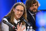 Пресс-конференция, посвященная открытию 107 сезона Московского академического Музыкального театра им. К.С. Станиславского и Вл. И. Немировича-Данченко (МАМТ), на Основной сцене театра. Солист балета, педагог-репетитор МАМТ Георги Смилевски во время пресс-конференции.