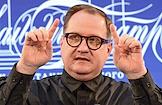Пресс-конференция, посвященная открытию 107 сезона Московского академического Музыкального театра им. К.С. Станиславского и Вл. И. Немировича-Данченко (МАМТ), на Основной сцене театра. Главный хормейстер МАМТ Станислав Лыков во время пресс-конференции.
