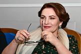 Пресс-конференция, посвященная открытию 107 сезона Московского академического Музыкального театра им. К.С. Станиславского и Вл. И. Немировича-Данченко (МАМТ), на Основной сцене театра. Оперная певица Хибла Герзмава во время пресс-конференции.