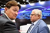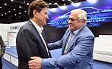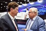 Международная выставка автомобильной промышленности "Авто+Автомеханика Санкт-Петербург" в КВЦ "Экспофорум". Операционный директор MGC GROUP Роман Ган (слева) и руководитель дирекции развития проектной деятельности Фонда "Росконгресс" Слава Ходько (справа) во время форума.