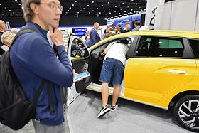 Международная выставка автомобильной промышленности "Авто+Автомеханика Санкт-Петербург" в КВЦ "Экспофорум". Жанровая фотография. Посетители на выставке.