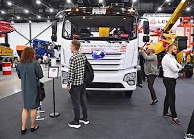 Международная выставка автомобильной промышленности "Авто+Автомеханика Санкт-Петербург" в КВЦ "Экспофорум". Жанровая фотография. Строительная техника на выставке.