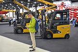 Международная выставка автомобильной промышленности "Авто+Автомеханика Санкт-Петербург" в КВЦ "Экспофорум". Жанровая фотография. Посетители на выставке строительной техники.