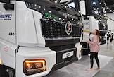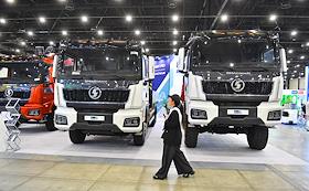 Международная выставка автомобильной промышленности "Авто+Автомеханика Санкт-Петербург" в КВЦ "Экспофорум". Жанровая фотография. Грузовые автомобили на выставке.