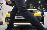 Международная выставка автомобильной промышленности "Авто+Автомеханика Санкт-Петербург" в КВЦ "Экспофорум". Жанровая фотография. Автомобиль LADA Iskra SW на выставке.