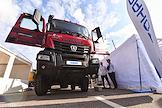 Международная выставка автомобильной промышленности "Авто+Автомеханика Санкт-Петербург" в КВЦ "Экспофорум". Жанровая фотография. Грузовой автомобиль "Камаз" на выставке.