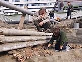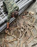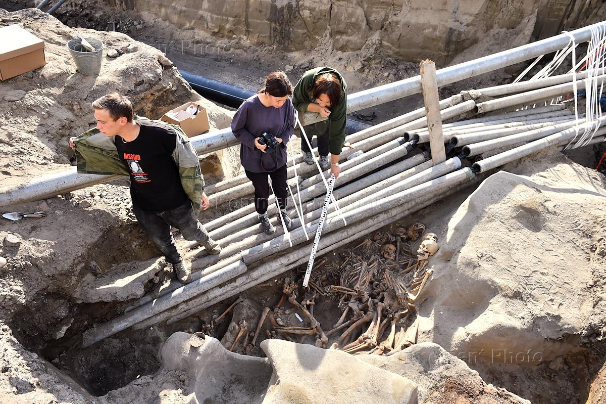 Археологические раскопки массового захоронения XVII века на улице Каратанова, обнаруженные во время ремонта трубопровода. Жанровая фотография.