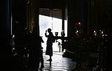 "День перенесения мощей святого князя Александра Невского и общегородской крестный ход". Божественная литургия в Казанском кафедральном соборе. Прихожане в соборе.