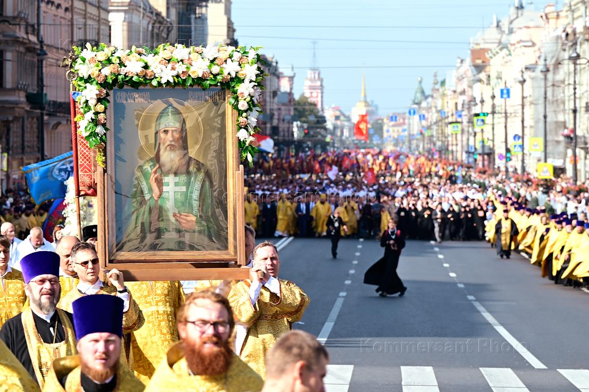 "День перенесения мощей святого князя Александра Невского и общегородской крестный ход". Крестный ход по Невскому проспекту к площади Александра Невского.