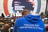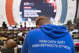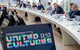 XI Санкт-Петербургский международный форум объединенных культур. Итоговая сессия под председательством заместителя председателя правительства России Татьяны Голиковой. Художественный руководитель Государственного театра наций Евгений Миронов (в центре) перед началом сессии.