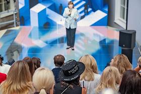 XI Санкт-Петербургский международный форум объединенных культур. Церемония открытия Центра Современного Искусства имени Сергея Курехина. Художественный руководитель Центра современного искусства имени Сергея Курехина Анастасия Курехина на церемонии.